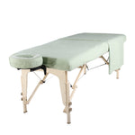 The set includes a fitted sheet, a flat sheet, and a universal-sized pillow cover. The generously sized flat sheet offers plenty of coverage for client privacy.