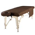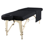 The set includes a fitted sheet, a flat sheet, and a universal-sized pillow cover. The generously sized flat sheet offers plenty of coverage for client privacy.